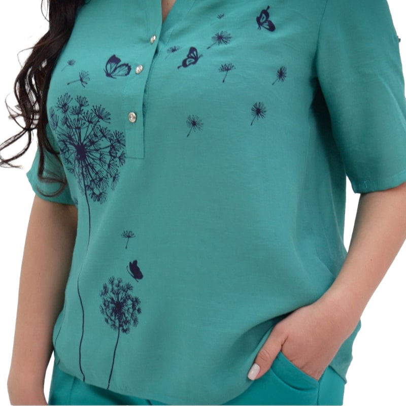 Красивая, легкая, удобная, очень мне понравилась блуза, тем более такой нежный цвет и принт. Качество и цена у не прекрасные. Я очень довольна своим выбором. Рекомендую ваш магазин.