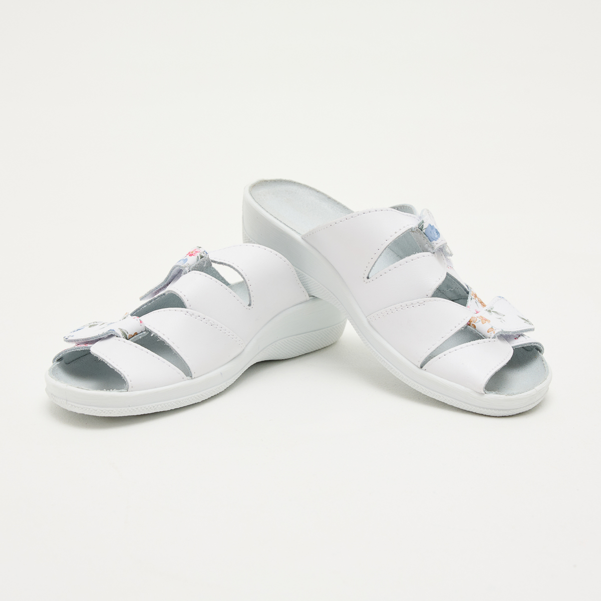Босоножки Стиль, белые с цветами