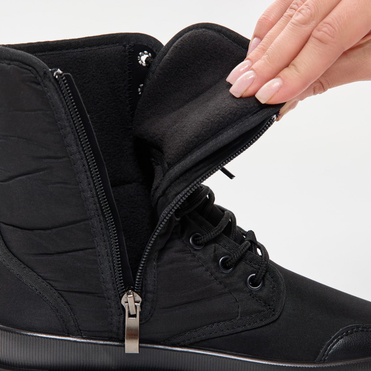 Усередині — теплий фліс, що створює приємне відчуття комфорту й затишку. Підошва з глибоким протектором забезпечує стабільність і надійне зчеплення навіть на слизькій поверхні.