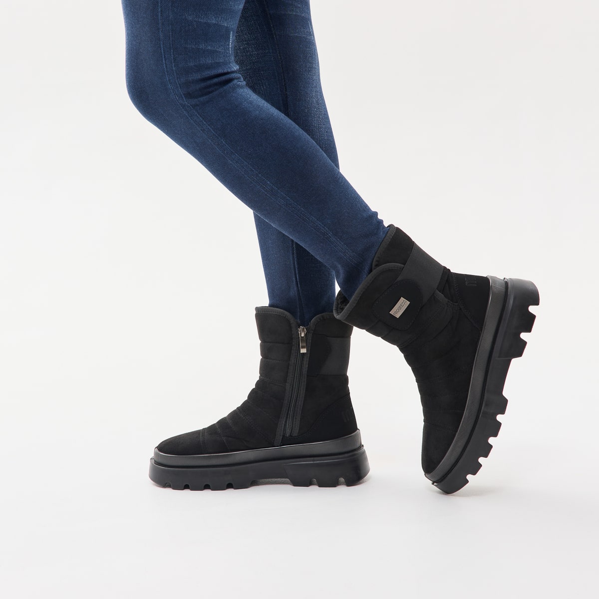 Ботинки Ханна чорні — це дві стильні та практичні інтерпретації однієї успішної зимової моделі, створені для тих, хто цінує комфорт, тепло й надійність навіть у найсуворіші морози.