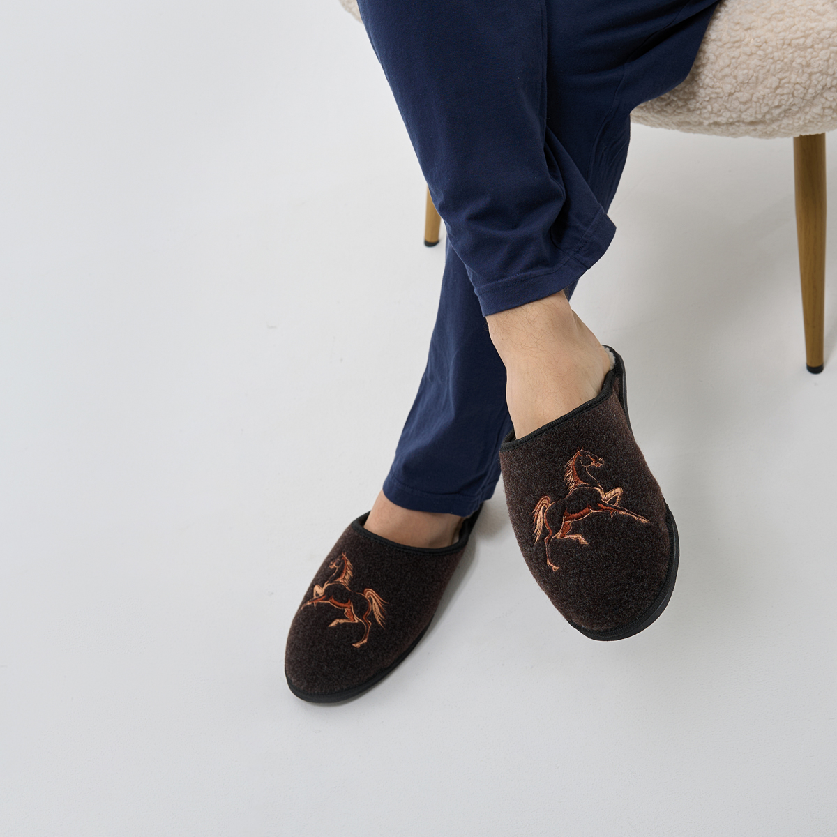 Повышенная износостойкость: Верх из плотного войлока гарантирует долговечность тапочек – они не протрутся и не растянутся со временем.