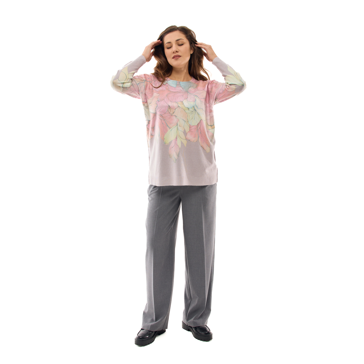 Джемпер Алиса - этот стильный и элегантный предмет гардероба по праву можно назвать произведением искусства. Уникальный цветочный узор делает модель невероятно женственной и привлекательной.