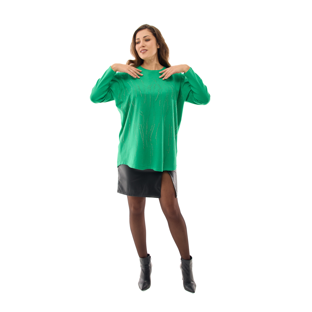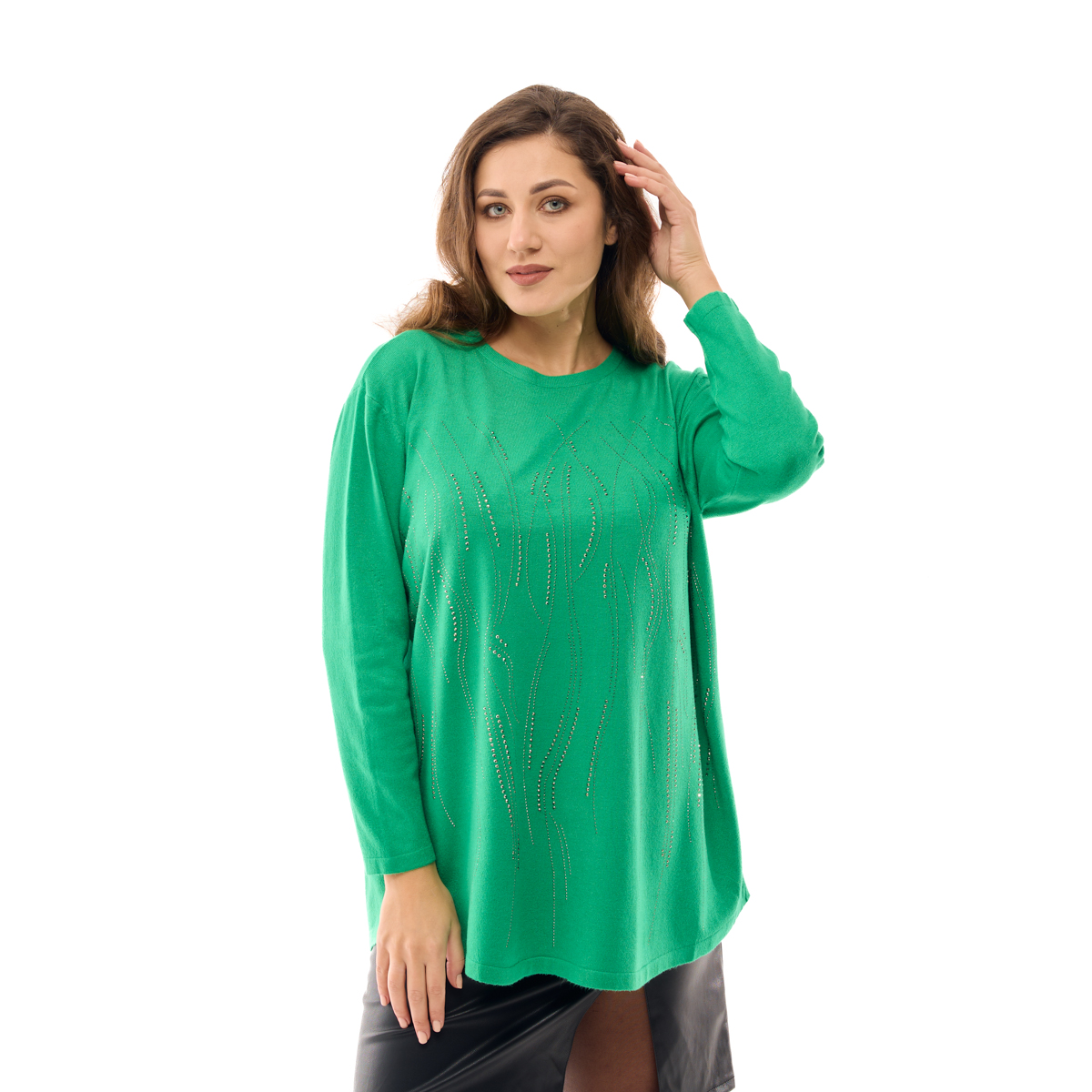 Джемпер Анджелина обеспечит Вам праздничное настроение, даже в пасмурную погоду. Сияние стразов, которыми он украшен, подарят Вам свет и радость. Обратите внимание на крой в форме трапеции. Он идеально садится на любой тип фигуры. Быть женственной легко!