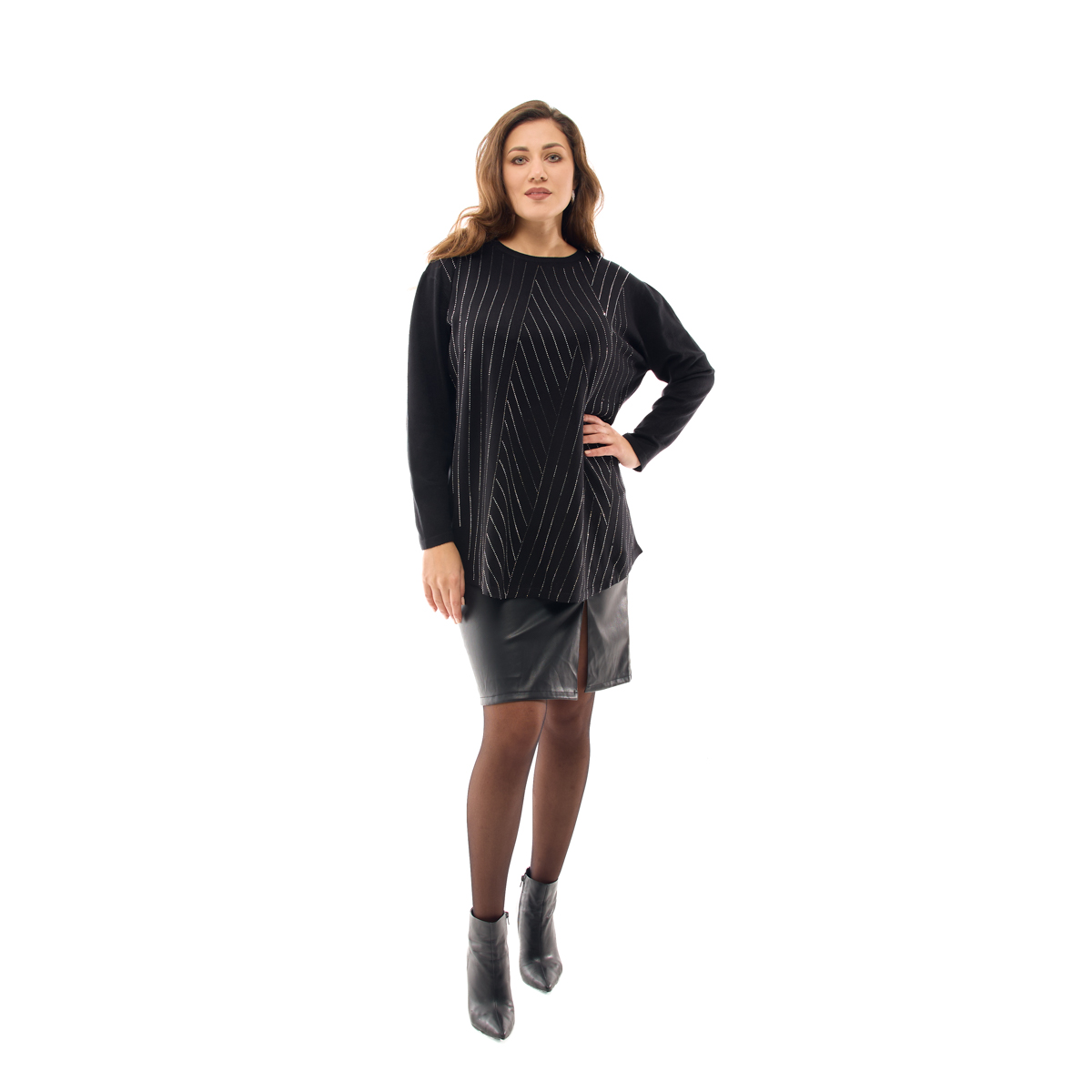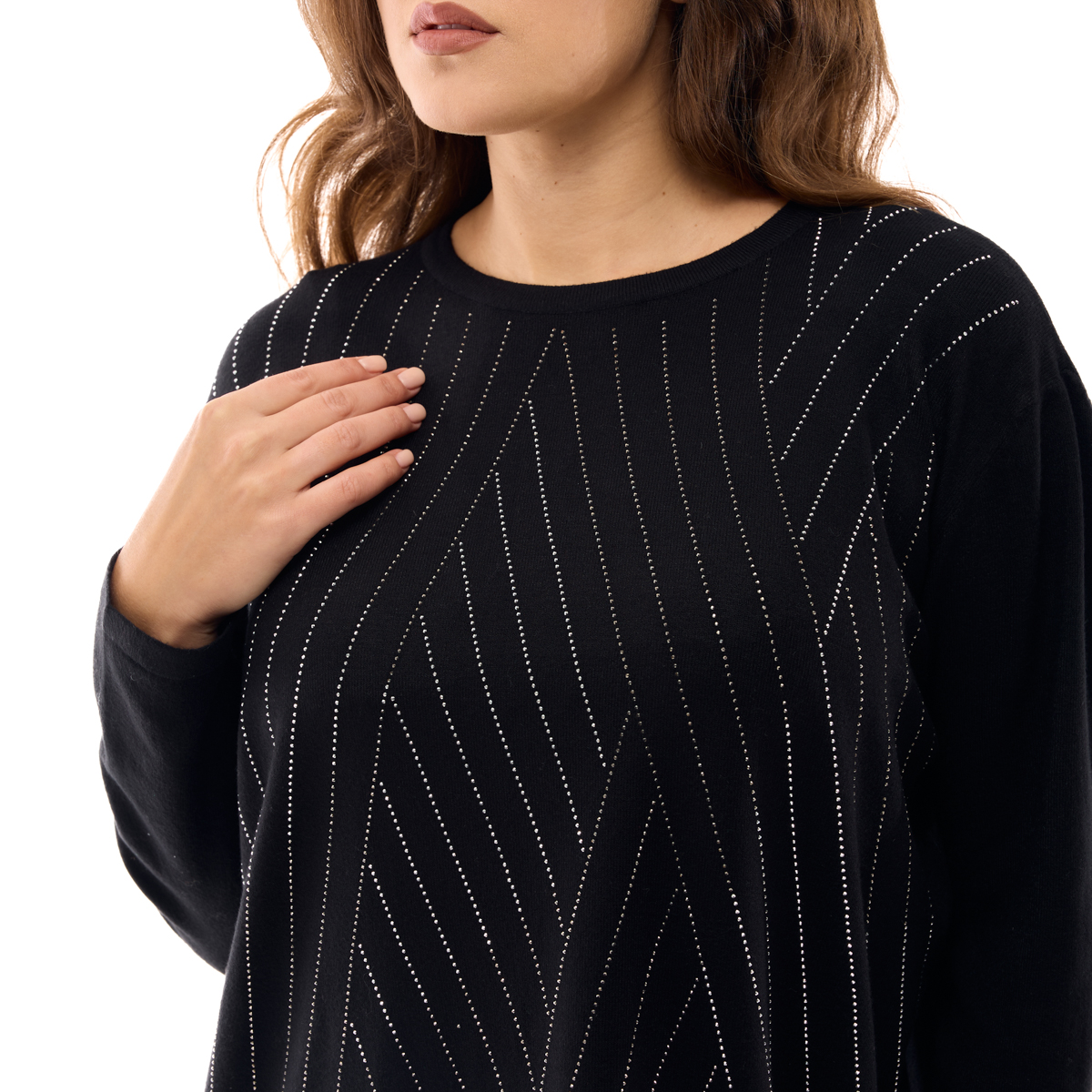 Джемпер Анджелина обеспечит Вам праздничное настроение, даже в пасмурную погоду. Сияние стразов, которыми он украшен, подарят Вам свет и радость. Обратите внимание на крой в форме трапеции. Он идеально садится на любой тип фигуры. Быть женственной легко!