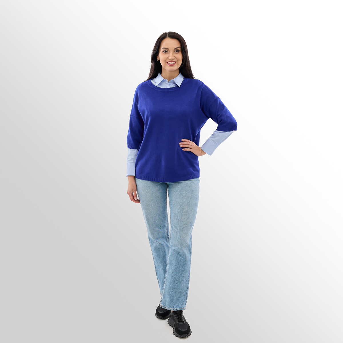 Джемпер Мелания - универсальное дополнение к Вашему гардеробу. Свободный крой идеально садится на любой тип фигуры. Вы можете сочетать его с любой одеждой - джинсы, брюки, юбки! Рукава три четверти добавляют удобства и функциональности.