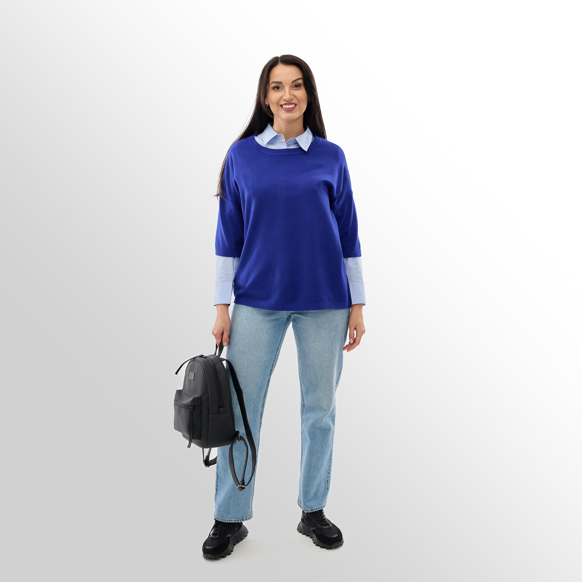 Джемпер «Мелания» – это неотъемлемая часть базового гардероба, которая гармонично сочетается с юбками, брюками, джинсами и шортами. Он поможет создавать как элегантные, так и повседневные образы, подстраиваясь под ваш стиль.
