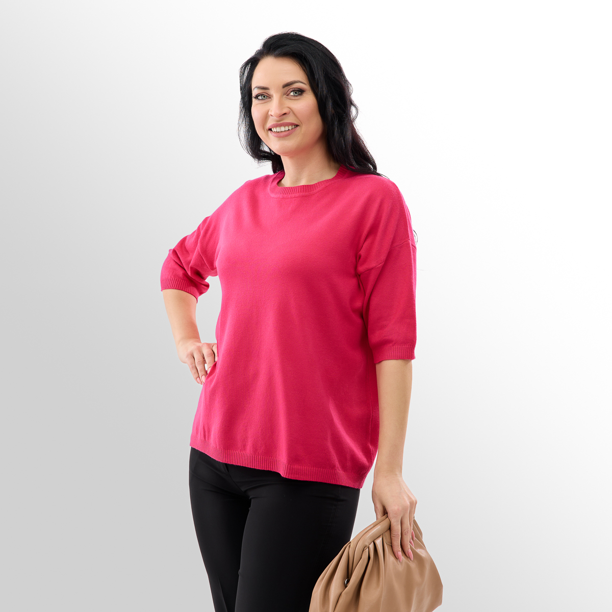 Джемпер Мелания - универсальное дополнение к Вашему гардеробу. Свободный крой идеально садится на любой тип фигуры. Вы можете сочетать его с любой одеждой - джинсы, брюки, юбки! Рукава три четверти добавляют удобства и функциональности.
