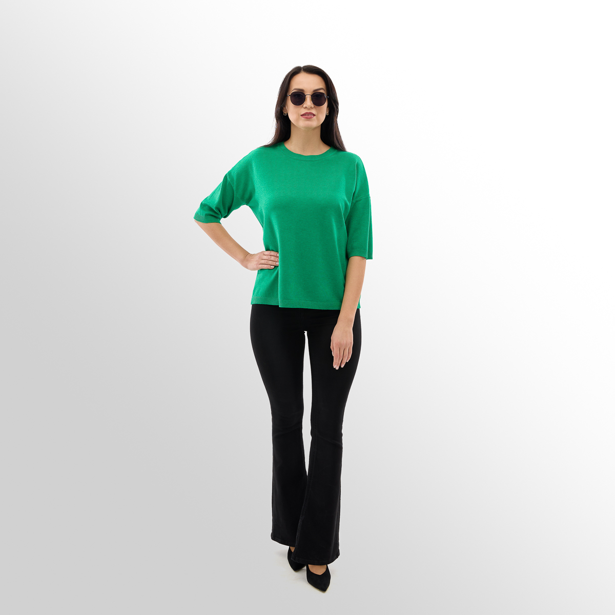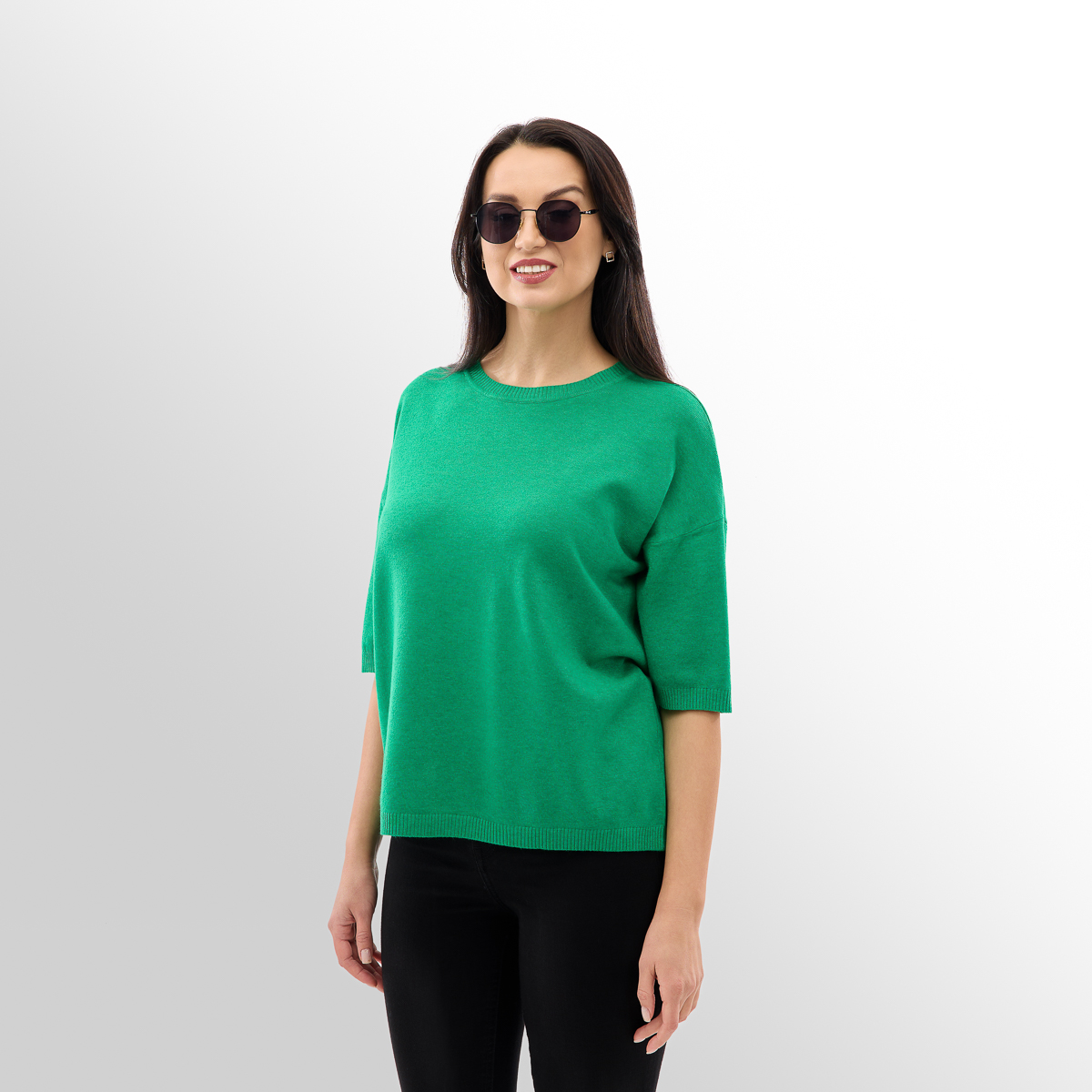Джемпер Мелания - универсальное дополнение к Вашему гардеробу. Свободный крой идеально садится на любой тип фигуры. Вы можете сочетать его с любой одеждой - джинсы, брюки, юбки! Рукава три четверти добавляют удобства и функциональности.