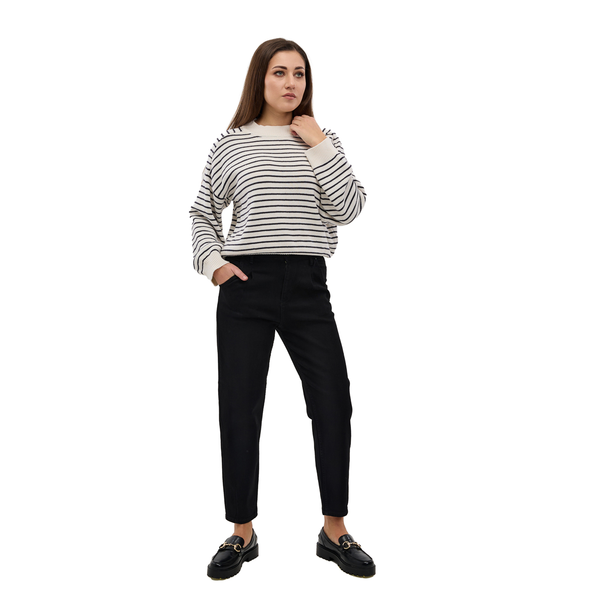 Модные варианты: Вы можете выбрать из двух актуальных фасонов — мом или мом с выточкой, которые подчеркнут вашу фигуру и добавят образу современности.