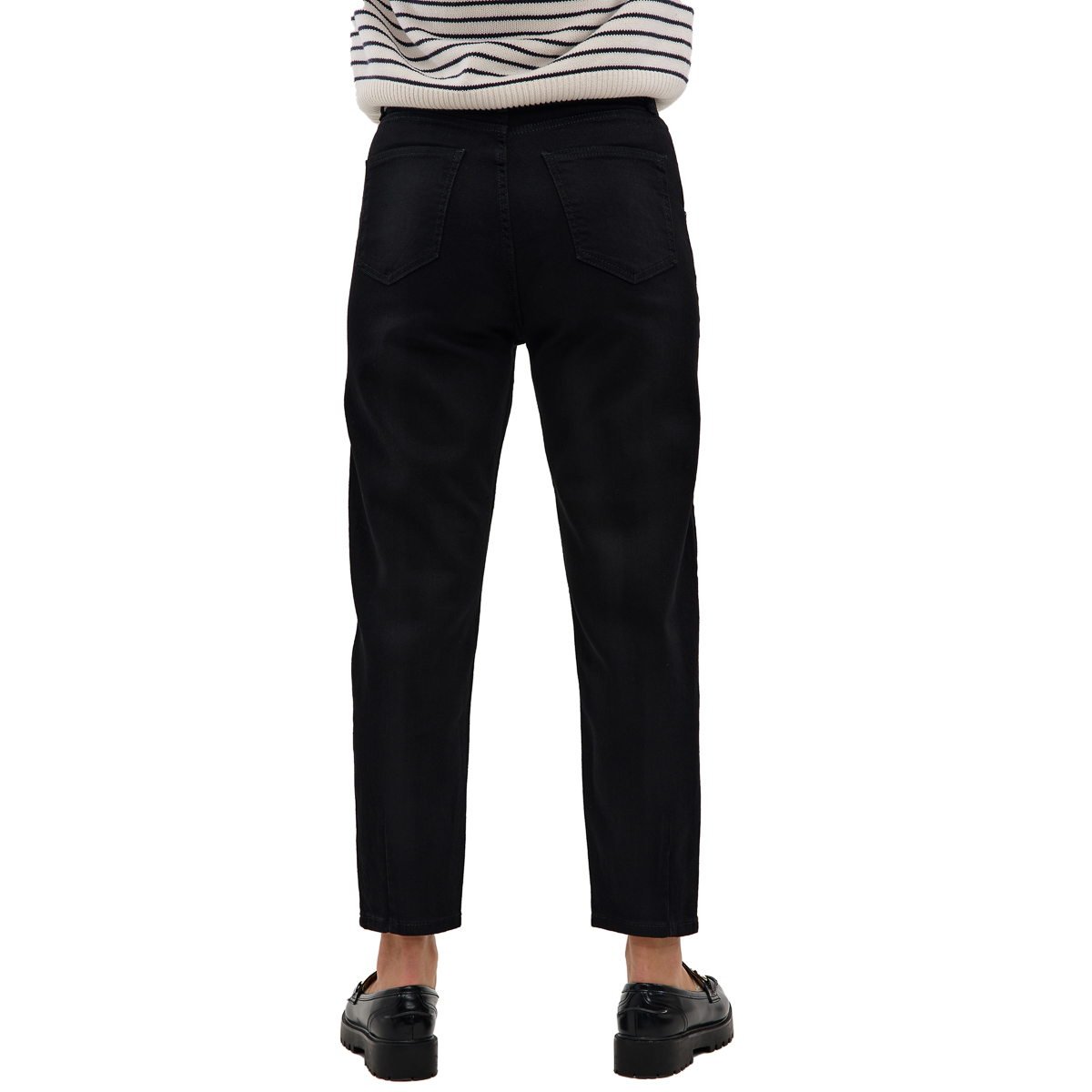 Выбирайте из двух модных вариантов: классические мoм и мoм с выточкой. Палитра расцветок включает синие, серые и черные джинсы — базовые цвета, которые подойдут к любому образу. Высокая посадка подчеркнет линию талии, создавая утонченный и стройный силуэт, а удобные объемные карманы добавят практичности.