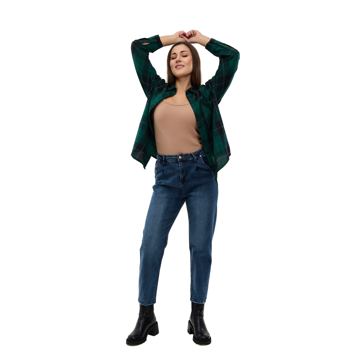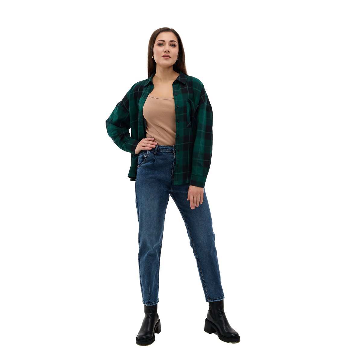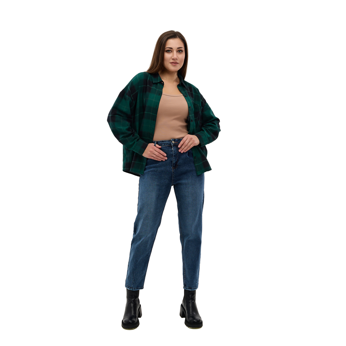 Модные варианты: Вы можете выбрать из двух актуальных фасонов — мом или мом с выточкой, которые подчеркнут вашу фигуру и добавят образу современности.