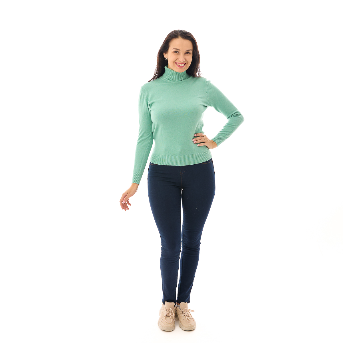 Эстетика гольфа Кэтрин также не оставит равнодушными ценителей моды. Умеренно облегающий силуэт изделия акцентирует на достоинствах фигуры, при этом деликатно маскируя возможные недостатки. Спектр цветовой палитры этой модели поражает своим разнообразием. От глубокого темно-зеленого до трендового лимонного – каждая девушка сможет найти то, что подойдет именно ей. А благодаря насыщенности оттенков, гольф Кэтрин легко комбинируется с различными элементами гардероба: будь то юбка, брюки или даже джинсы.