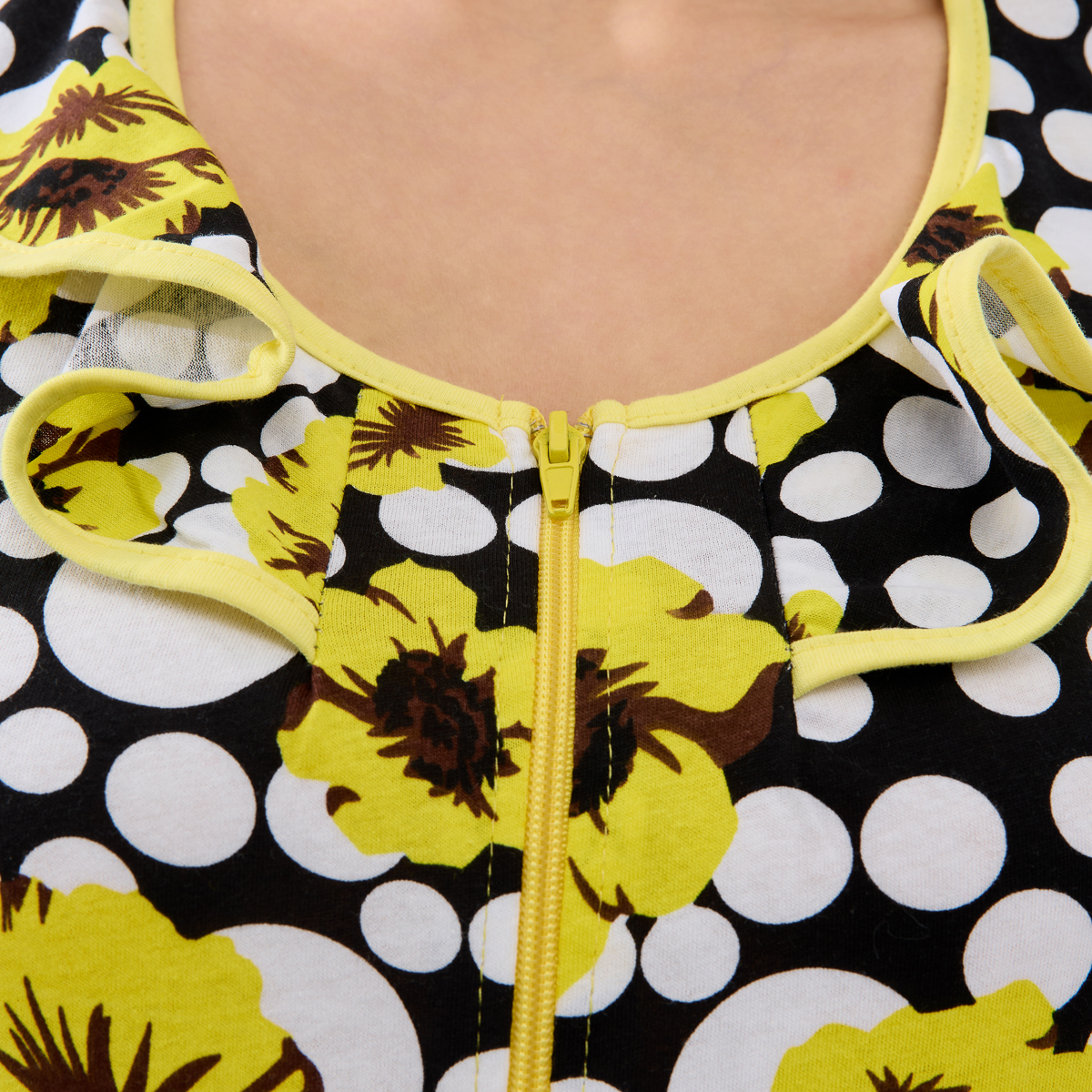 Халат Магия Цветов подарит Вам легкость и комфорт! Свободный крой позволит двигаться без ограничений. Посочек аккуратно подчеркнет Вашу талию. А удобная молния сделает одевание быстрым и легким. И, конечно, карманы! Добавят функциональности и практичности! Обратите внимание на элегантный воротничок. Как шикарно он украшает зону декольте. А роскошный цветочный узор добавляет особой женственности и шарма.