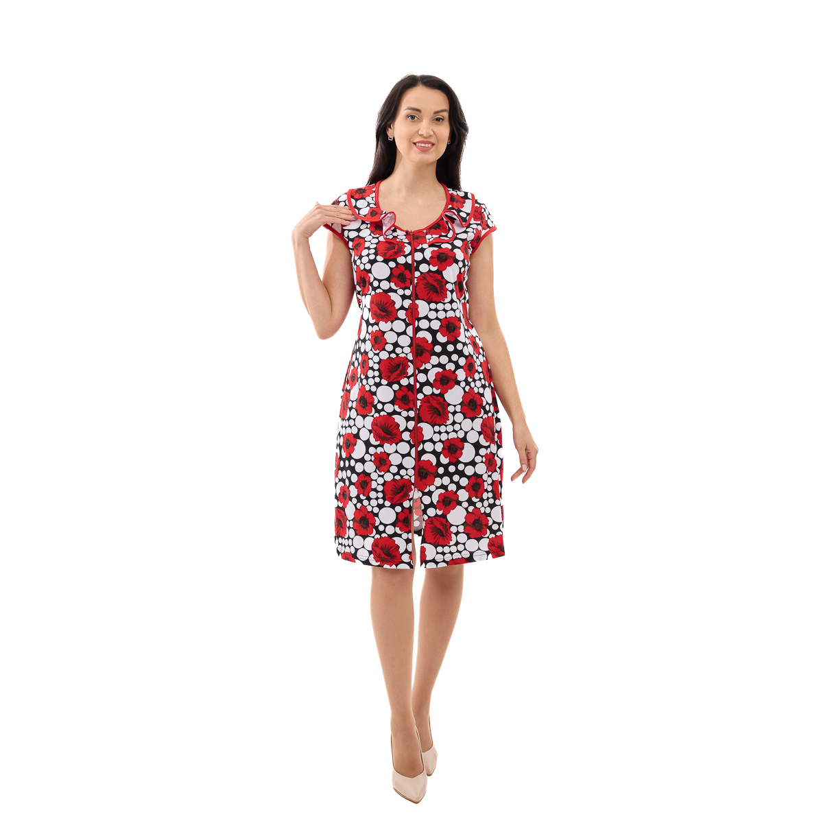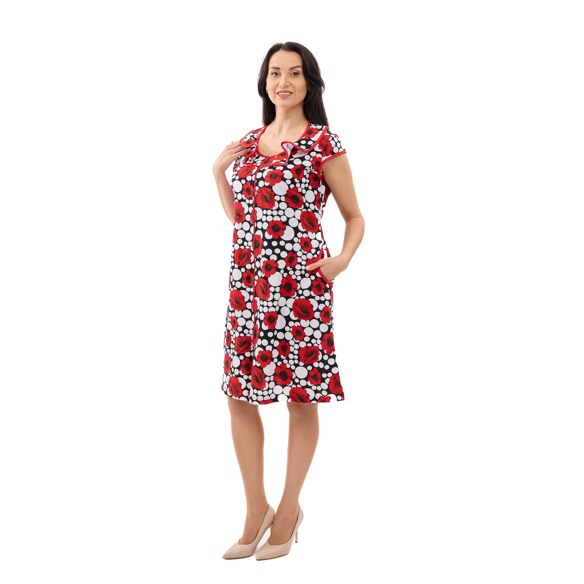Халат Магия Цветов подарит Вам легкость и комфорт! Свободный крой позволит двигаться без ограничений. Посочек аккуратно подчеркнет Вашу талию. А удобная молния сделает одевание быстрым и легким. И, конечно, карманы! Добавят функциональности и практичности! Обратите внимание на элегантный воротничок. Как шикарно он украшает зону декольте. А роскошный цветочный узор добавляет особой женственности и шарма.