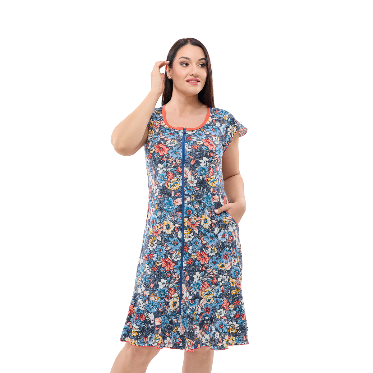 Халат Магия Цветов подарит Вам легкость и комфорт! Свободный крой позволит двигаться без ограничений. Посочек аккуратно подчеркнет Вашу талию. А удобная молния сделает одевание быстрым и легким. И, конечно, карманы! Добавят функциональности и практичности! Обратите внимание на элегантный воротничок. Как шикарно он украшает зону декольте. А роскошный цветочный узор добавляет особой женственности и шарма.