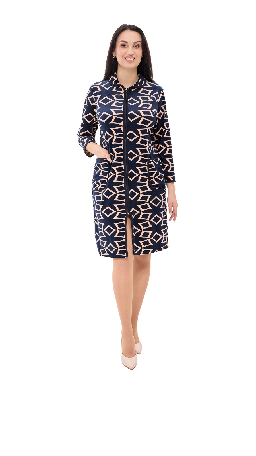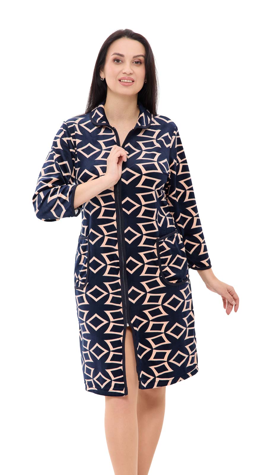Нежность велюра! Этот халат создан для домашнего уюта и идеально подходит для путешествий благодаря своей удобности. Он изготовлен из мягкого велюра, который поддерживает комфортную температуру тела, не занимая много места в багаже. Простой крой и молния по всей длине обеспечивают легкость и свободу движений, а накладные карманы делают халат еще более функциональным, позволяя хранить мелочи, которые всегда нужны под рукой. Велюровая ткань ценится за свою износостойкость и удобство в эксплуатации. Одежда из велюра привлекает своей бархатистой текстурой, отлично впитывает влагу, обеспечивает тепло и комфорт коже.