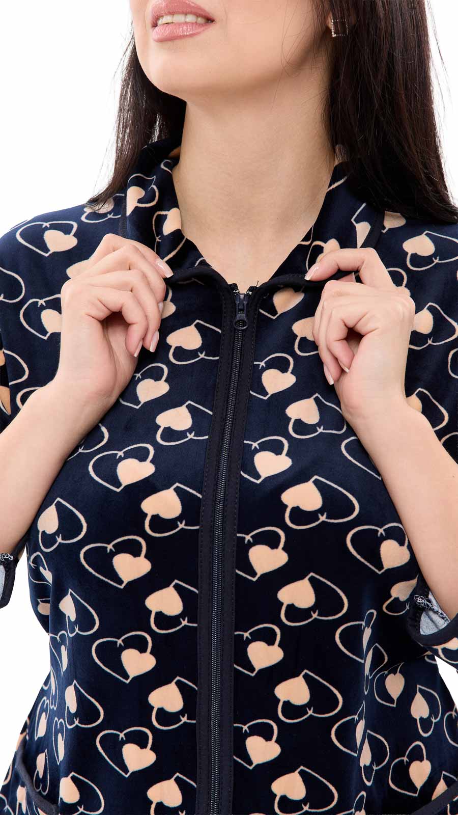 Нежность велюра! Этот халат создан для домашнего уюта и идеально подходит для путешествий благодаря своей удобности. Он изготовлен из мягкого велюра, который поддерживает комфортную температуру тела, не занимая много места в багаже. Простой крой и молния по всей длине обеспечивают легкость и свободу движений, а накладные карманы делают халат еще более функциональным, позволяя хранить мелочи, которые всегда нужны под рукой. Велюровая ткань ценится за свою износостойкость и удобство в эксплуатации. Одежда из велюра привлекает своей бархатистой текстурой, отлично впитывает влагу, обеспечивает тепло и комфорт коже.