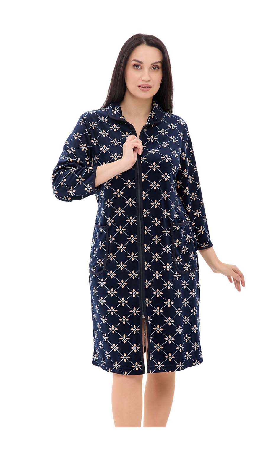 Нежность велюра! Этот халат создан для домашнего уюта и идеально подходит для путешествий благодаря своей удобности. Он изготовлен из мягкого велюра, который поддерживает комфортную температуру тела, не занимая много места в багаже. Простой крой и молния по всей длине обеспечивают легкость и свободу движений, а накладные карманы делают халат еще более функциональным, позволяя хранить мелочи, которые всегда нужны под рукой. Велюровая ткань ценится за свою износостойкость и удобство в эксплуатации. Одежда из велюра привлекает своей бархатистой текстурой, отлично впитывает влагу, обеспечивает тепло и комфорт коже.