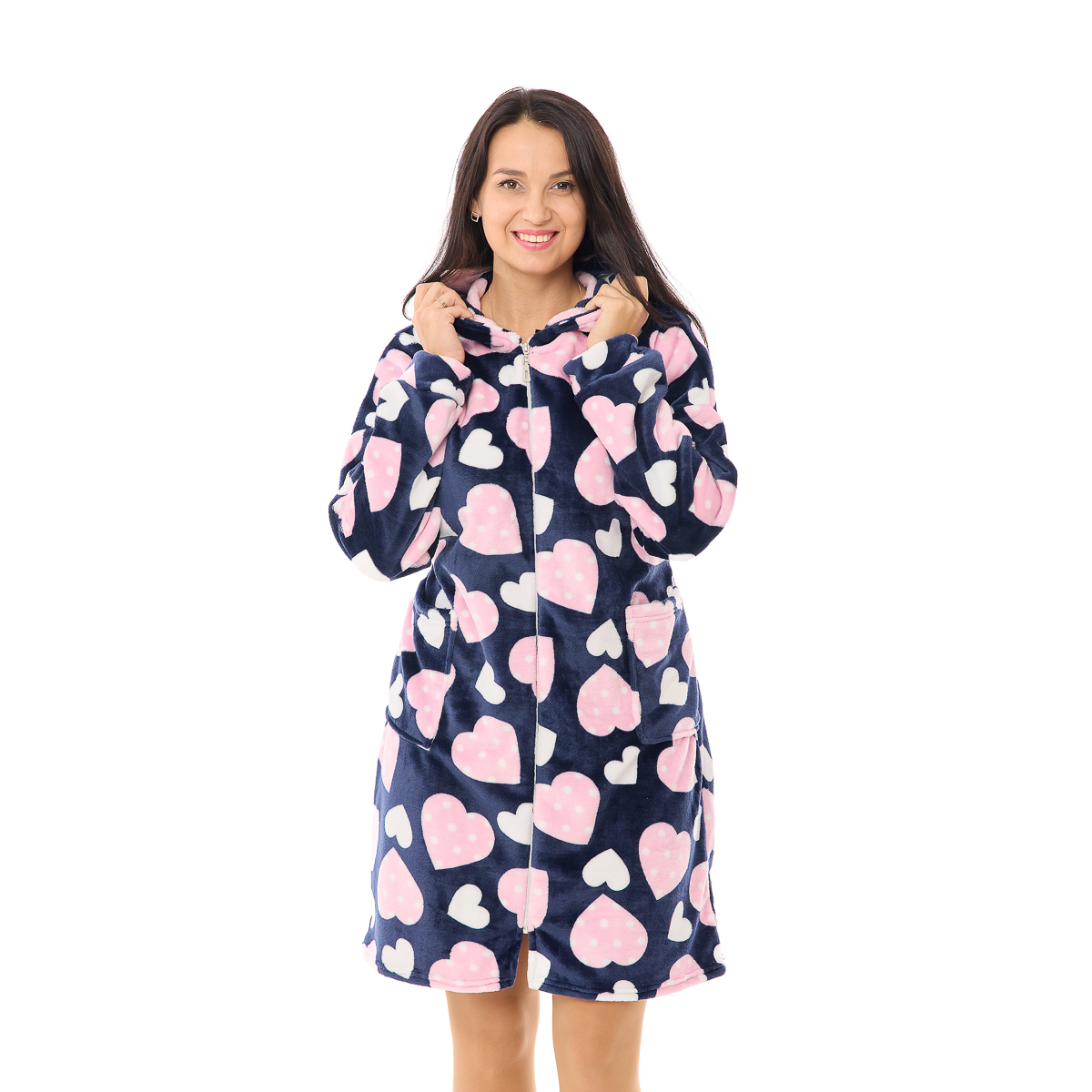 Халат Сусанна, на молнии, синий (сердца)