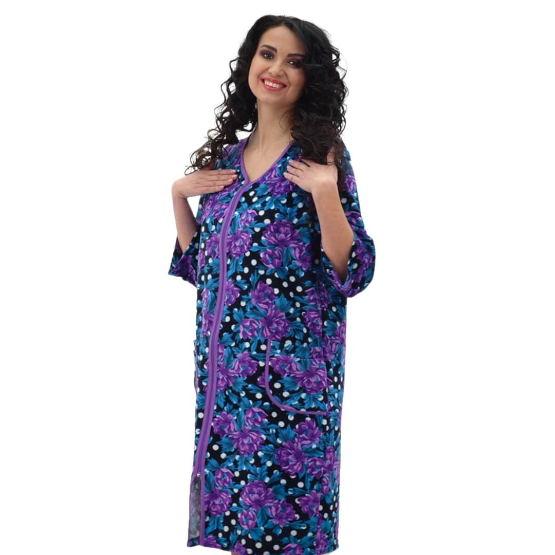 Что делает хорошую домашнюю одежду действительно отличной? Внимание к мелочам. Застежка-молния в халате Нежность велюра не только удобна, но и практична. Она обеспечивает свободу движений, не сковывая вас. Накладные карманы добавляют функциональности, позволяя хранить мелочи, которые всегда нужны под рукой.