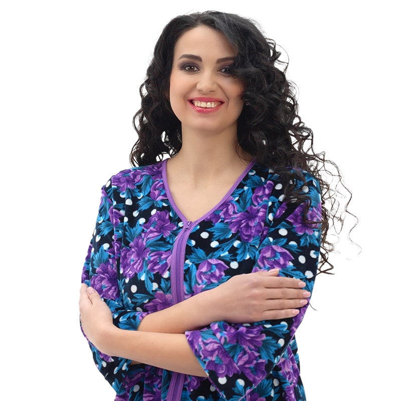 Невозможно пройти мимо стильных расцветок с модным цветочным принтом. Вы можете выбирать между красной, сиреневой и розовой гаммами. Это делает халат идеальным выбором не только для себя, но и в качестве подарка.