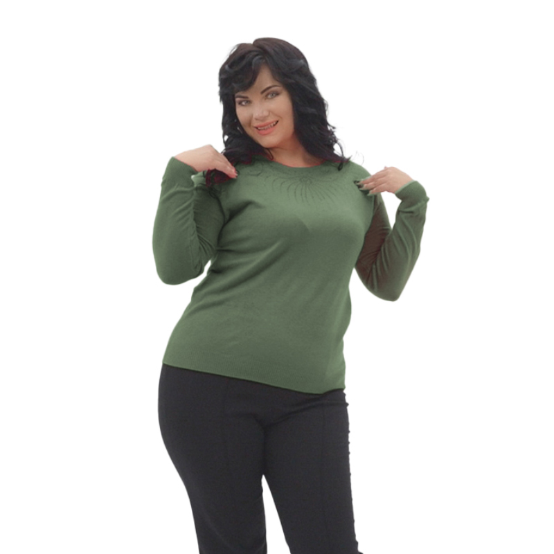 Коллекция джемперов Мариель, зеленый, круглый вырез горловины