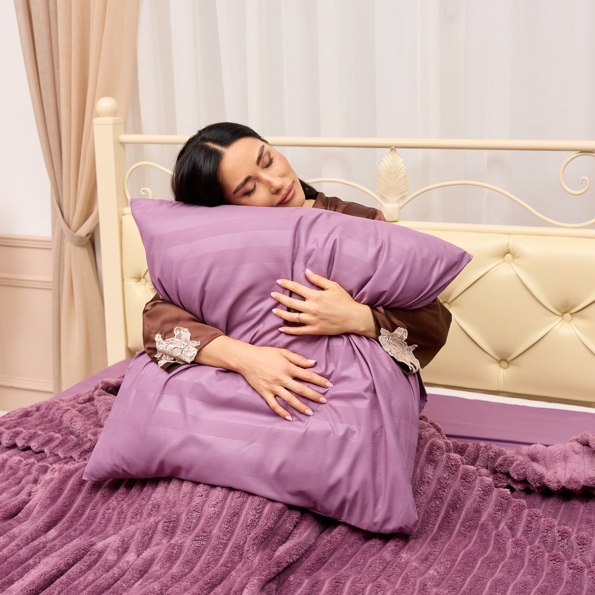 Микрострайп-сатин обладает шелковистой текстурой, приятной к телу, не вызывает перегрева и отлично пропускает воздух. Он обеспечивает оптимальный микроклимат во время сна — тепло зимой и прохладу летом.