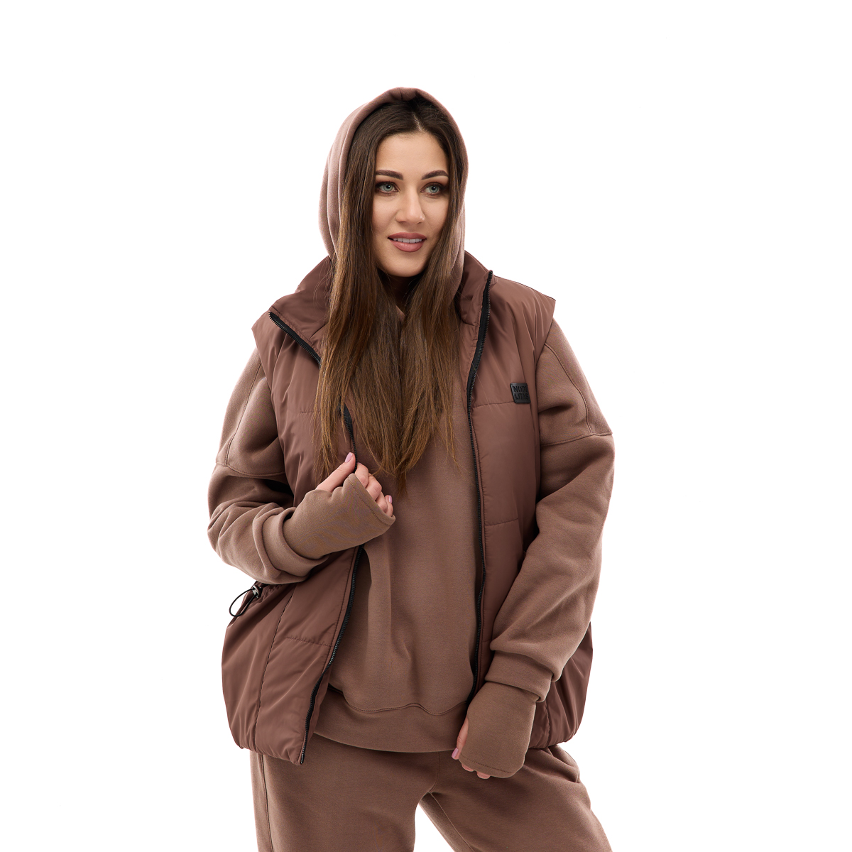 В одном комплекте вы получаете свободное худи, удобные брюки и стильный жилет. Это идеальный вариант для разных сезонов и ситуаций – носите элементы костюма вместе или по отдельности, создавая разные образы.