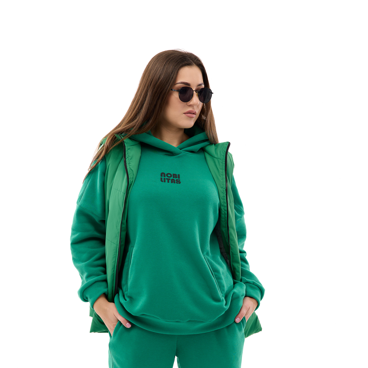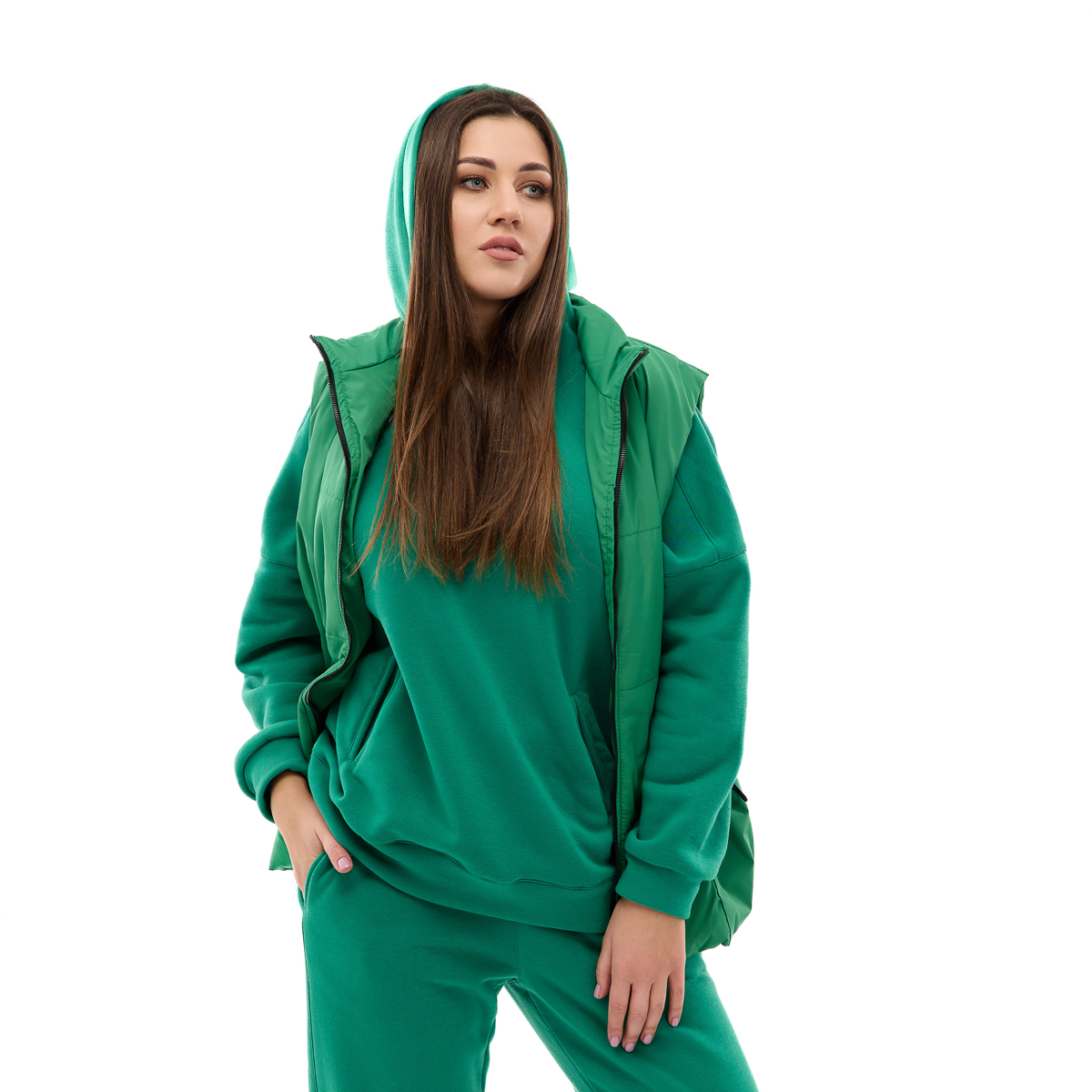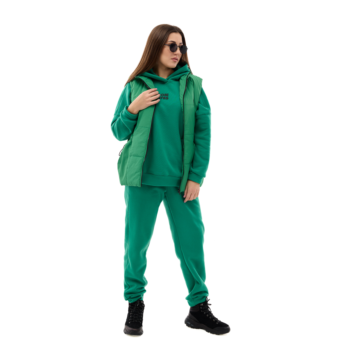 В одном комплекте вы получаете свободное худи, удобные брюки и стильный жилет. Это идеальный вариант для разных сезонов и ситуаций – носите элементы костюма вместе или по отдельности, создавая разные образы.