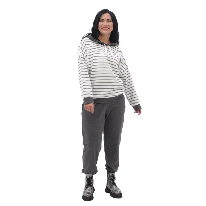 Остановимся на цветовой палитре. В коллекции вы найдете костюмы в трех классических цветах: черный, который добавит строгости и элегантности, зеленый — для тех, кто ценит свежесть и гармонию, и серый — универсальный и стильный. Ариэлла также радует своим размерным рядом: теперь и владельцы 60 размера могут почувствовать себя модными и удобно.
