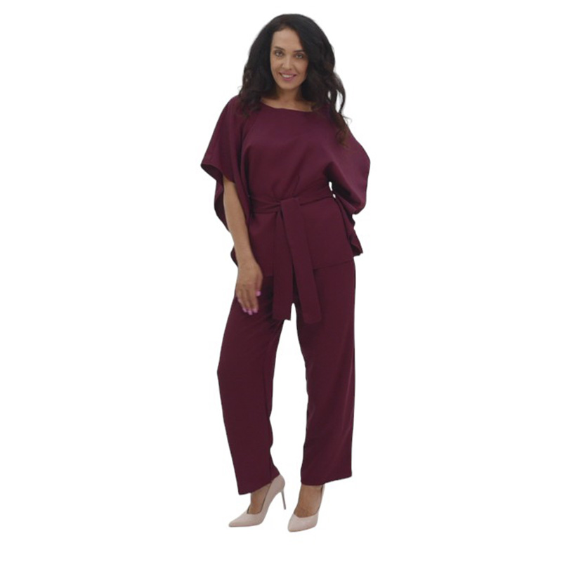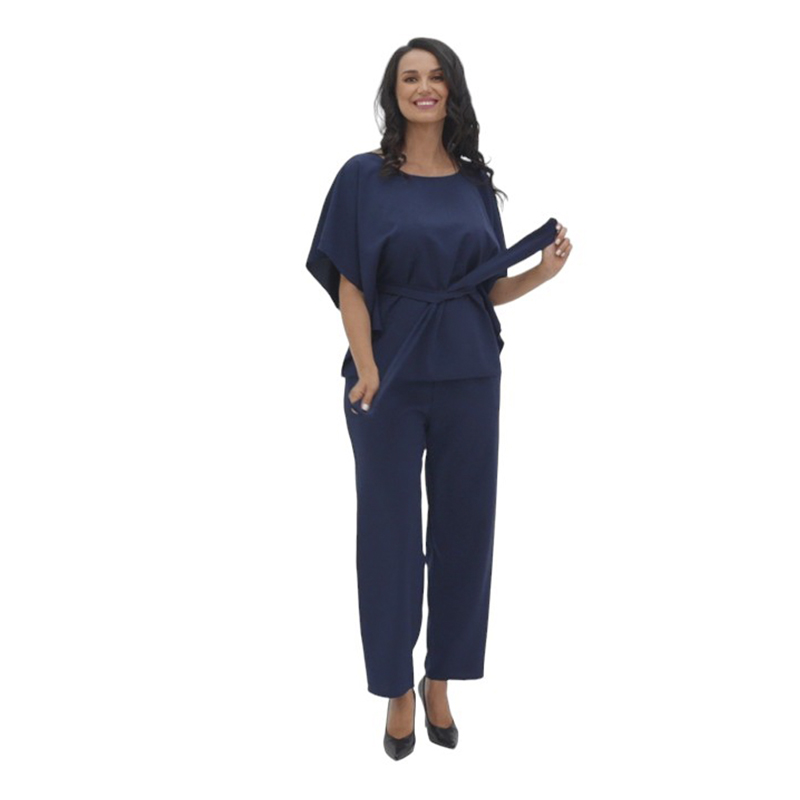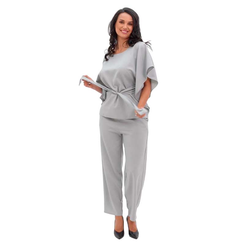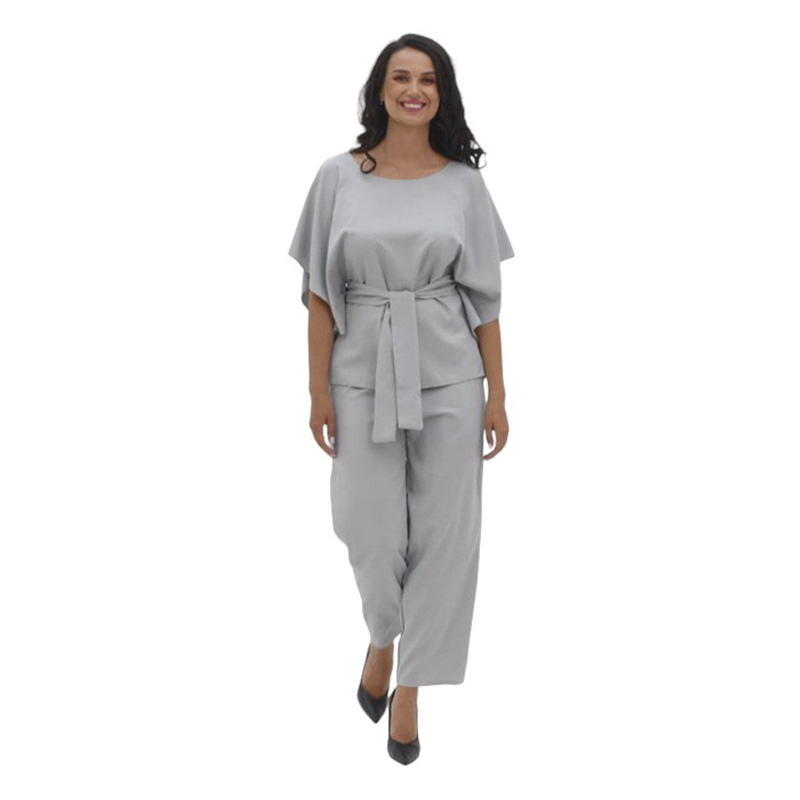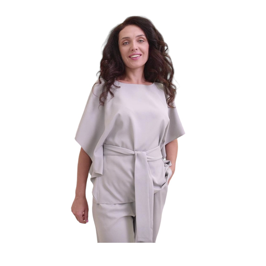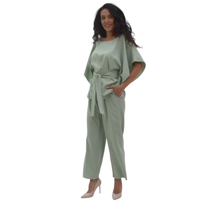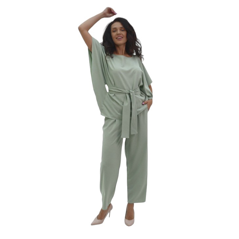 Костюм Элис создан для настоящих граций! Свободная блуза с поясом прекрасно садится по фигуре! Необычный дизайн рукавов подойдет даже для полных ручек и скроет недостатки! Пояс подчеркнет талию и обеспечит идеальную посадку! Прямые брюки с карманами на резинке - это удобство и стиль - два в одном!