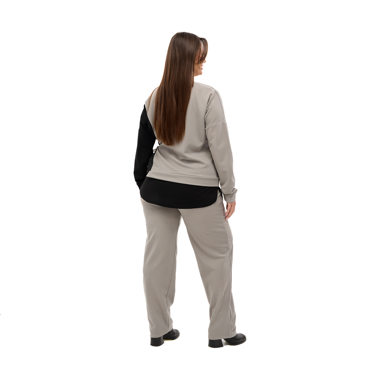 Эффектный дизайн – оригинальная асимметрия и сочетание двух цветов создают стильный, элегантный образ и визуально стройнят фигуру.