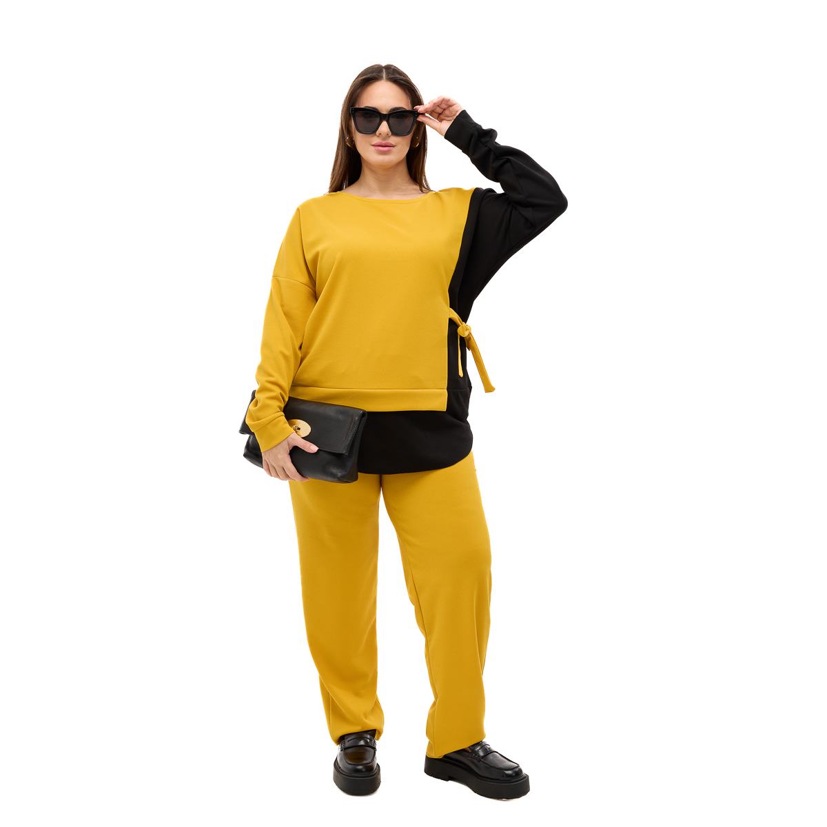Костюм Фантазия выглядит эффектно! Создаст шикарный и незабываемый образ! А цена приятно удивит! Костюм Фантазия имеет необычный дизайн! Оригинальная блуза и элегантные брюки! Блуза со специальными завязками визуально скроет несколько размеров и сделает фигуру более женственной! А классические брюки никогда не выйдут из моды! Обратите внимание на интересное сочетание двух цветов! Это не только удачное дизайнерское решение, которое придает элегантности! Асимметрия сделает Ваш силуэт более изящным, а фигуру стройнее! Это именно тот эффект, который вы всегда искали! Костюм выполнен из качественного и эластичного материала.