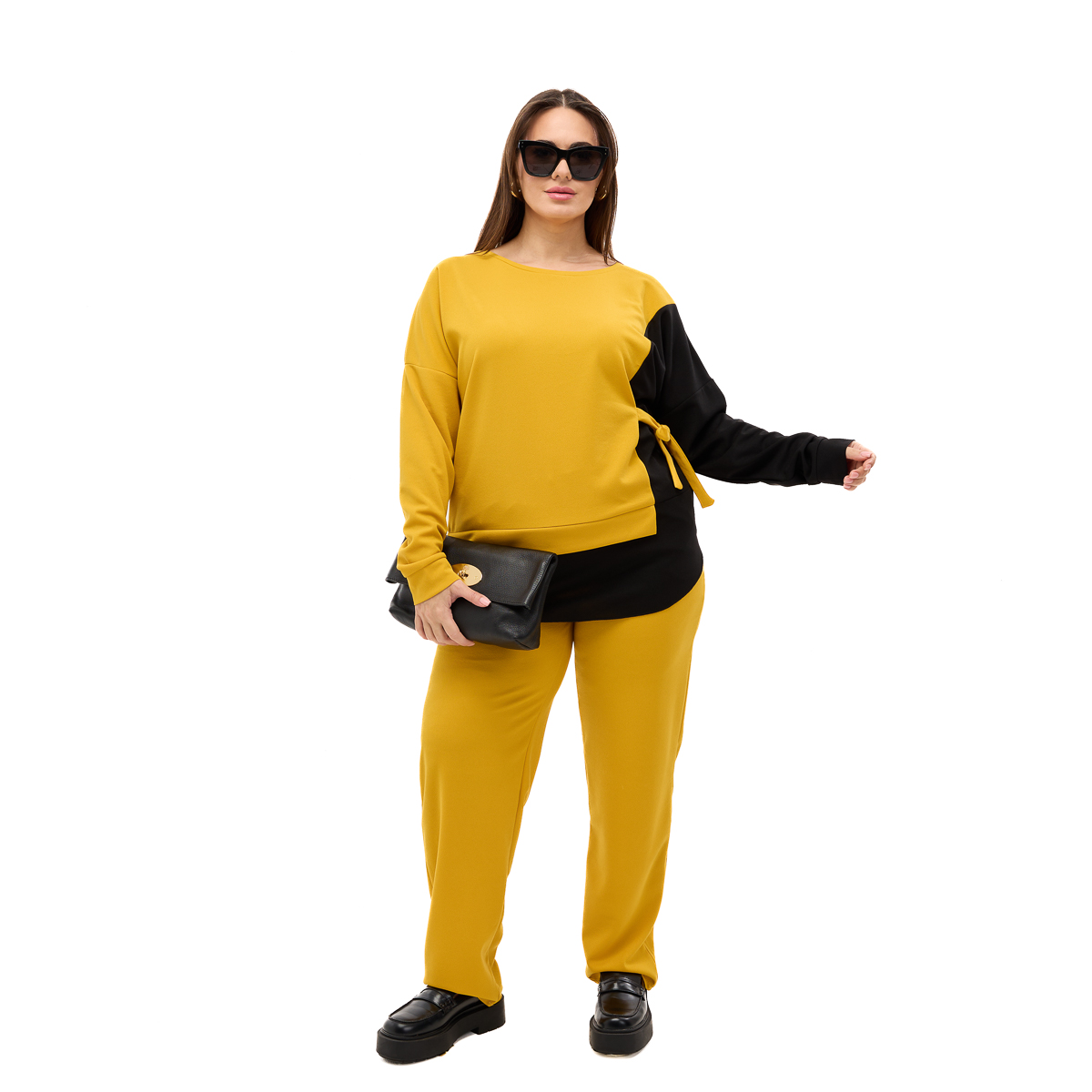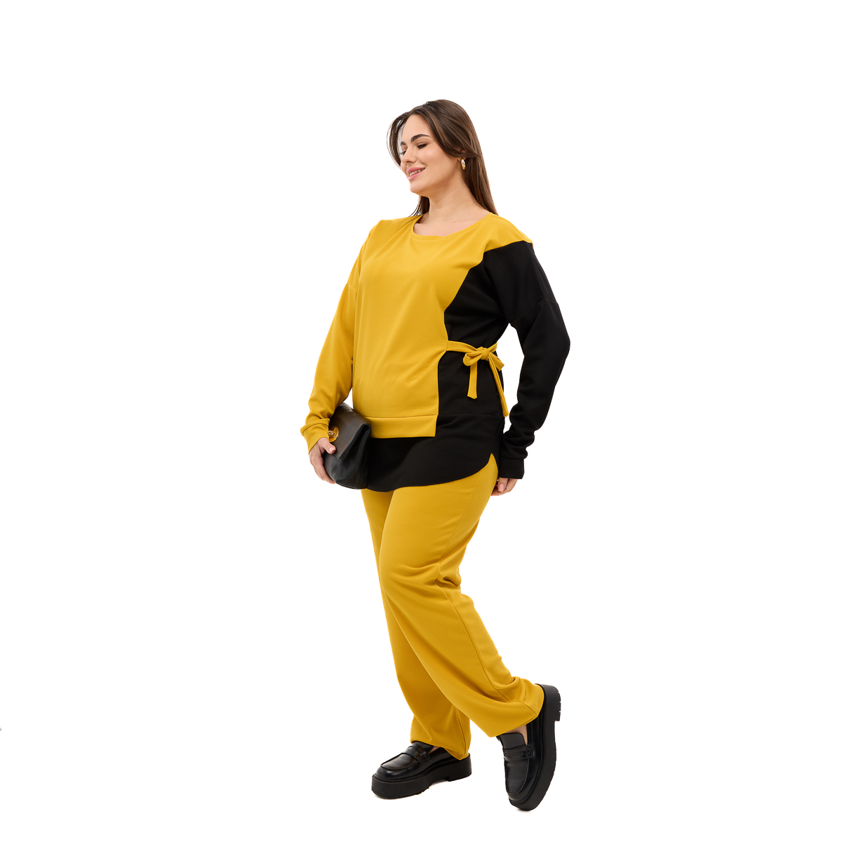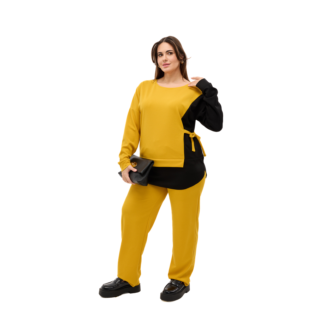 Корректирующий эффект – специальная завязка на блузе скрывает несколько размеров и подчеркивает женственные линии силуэта.