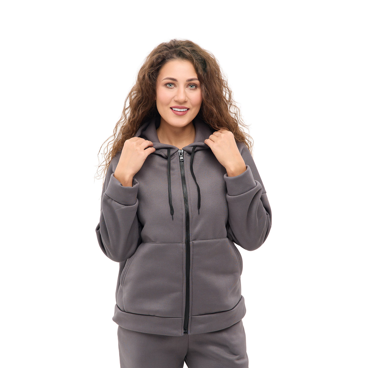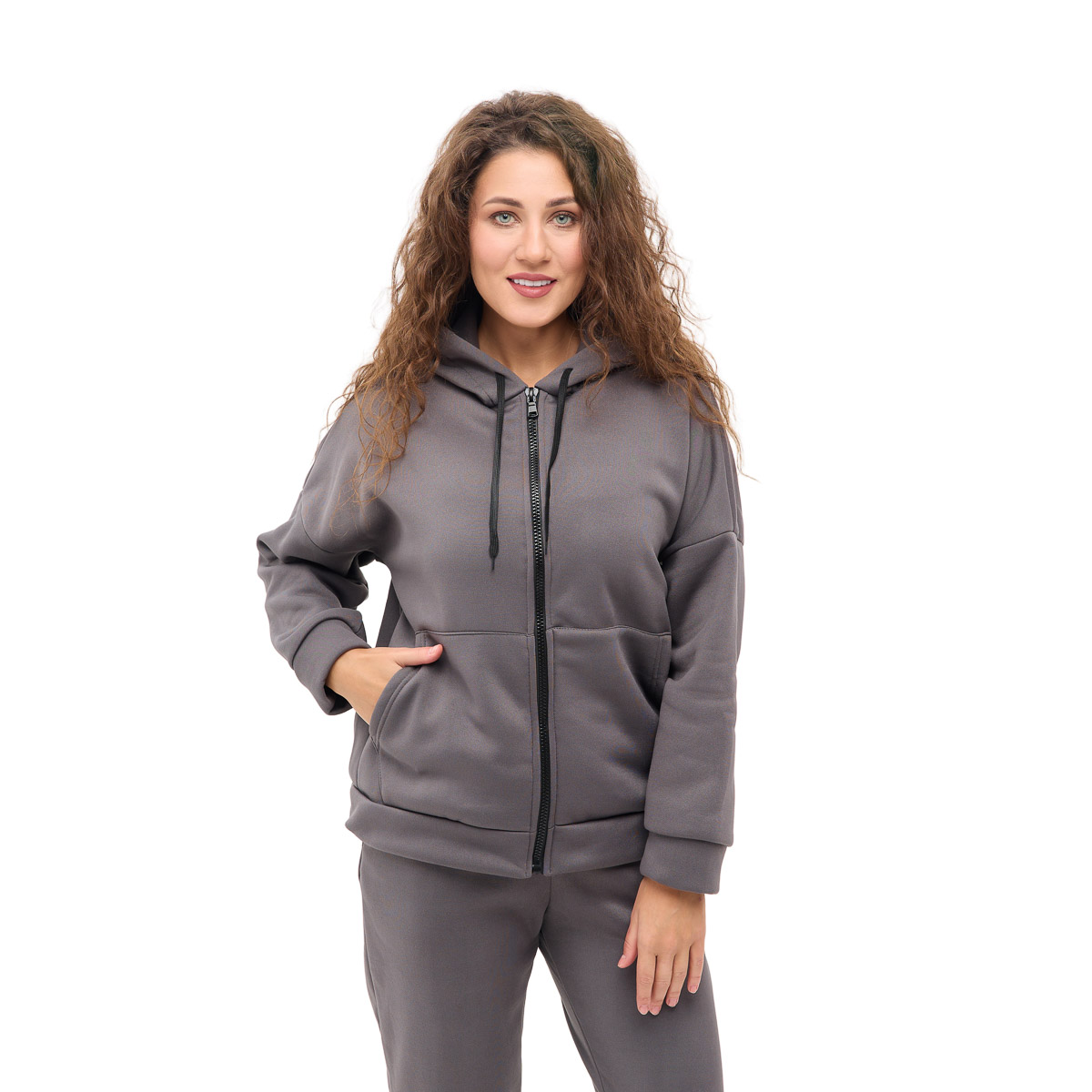 Кофта свободного кроя на молнии с удобными карманами и капюшоном - идеальный выбор для любой погоды! Вы будете выглядеть стильно и чувствовать невероятный комфорт, где бы вы ни были!