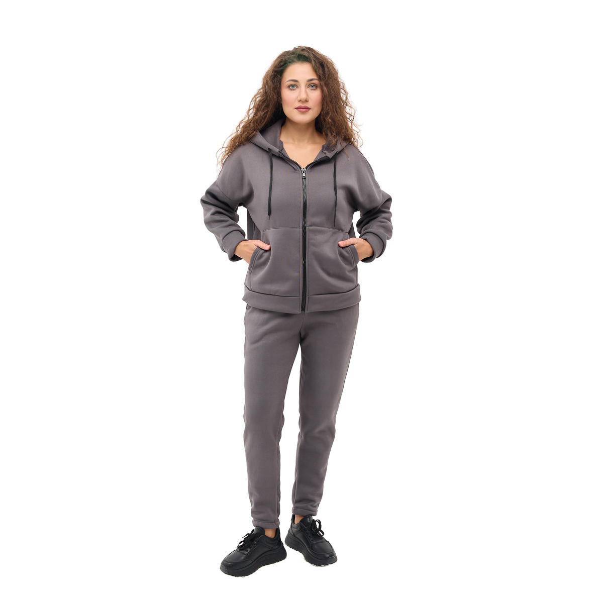 Кофта свободного кроя на молнии с удобными карманами и капюшоном - идеальный выбор для любой погоды! Вы будете выглядеть стильно и чувствовать невероятный комфорт, где бы вы ни были!