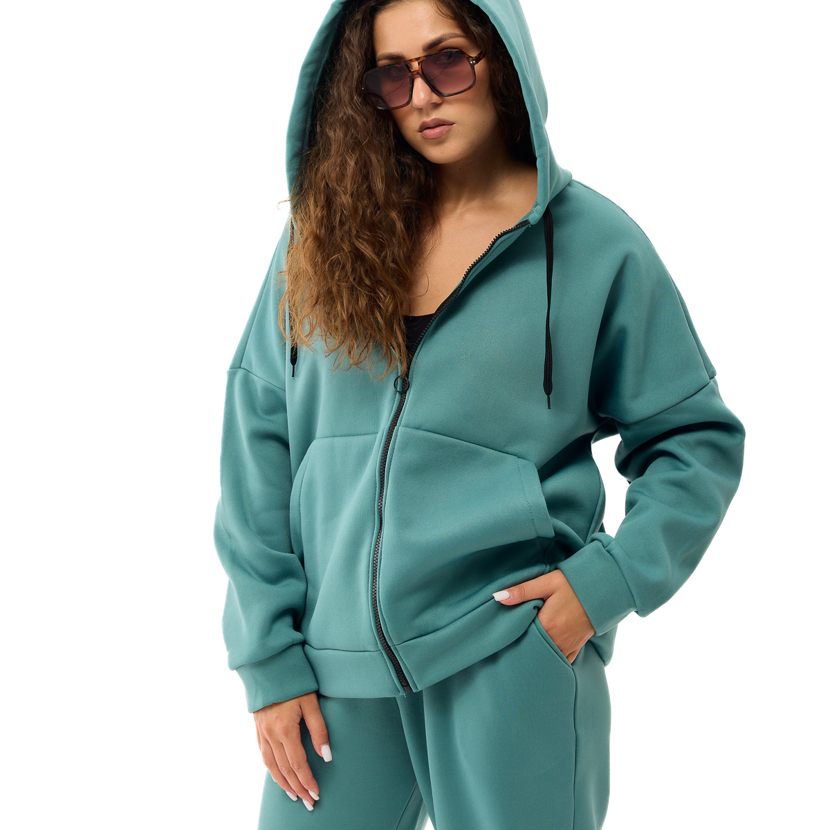 Кофта свободного кроя на молнии с удобными карманами и капюшоном - идеальный выбор для любой погоды! Вы будете выглядеть стильно и чувствовать невероятный комфорт, где бы вы ни были!