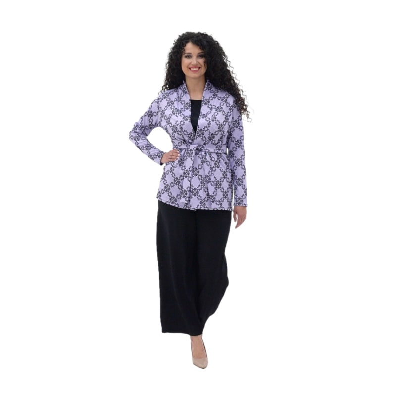 Что касается цветовой палитры, то представленные варианты в розовом, фиолетовом и золотистом оттенках подарят возможность выбрать то, что будет гармонировать именно с вашим типом внешности. И, конечно, великолепные материалы! Льняная основа блузы и брюк дарит ощущение прохлады даже в жаркий день, а мягкий трикотаж кардигана обогреет в прохладные вечера.