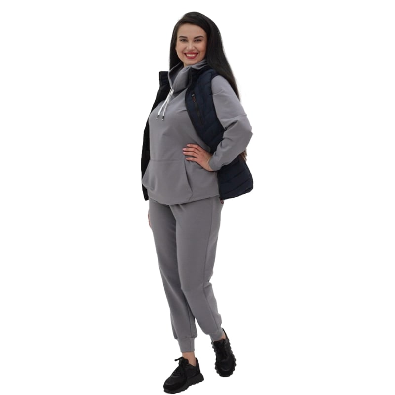 Костюм Магда создан для стильных и успешных женщин, ценящих комфорт и качество по разумной цене! Худи и брюки выполнены из мягкого трикотажа на основе хлопка! Украсят женщин любой комплекции! При этом трикотаж практически не меняется, не лохматится и не освещает при стирке! Настоящая находка на долгие годы! Удобная и стильная жилет прекрасно дополнит образ, утеплит так, что даже куртка не понадобится!