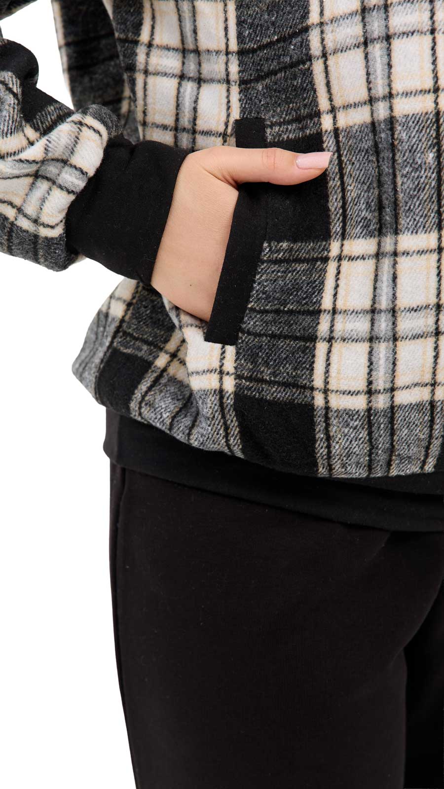 Комплект Мелисса в клетку с капюшоном — стильный и очень удобный вариант на каждый день, когда хочется выглядеть ухоженно, но чувствовать себя максимально свободно. Верх выполнен в формате мягкой рубашки-кофты на молнии с капюшоном и двумя удобными боковыми карманами — идеально, чтобы согреть руки или взять с собой мелочи. Ткань приятна на ощупь, хорошо ложится по фигуре и создает аккуратный силуэт. Брюки — прямого брючного кроя на резинке, с легким сужением к низу, благодаря чему образ выглядит современно и аккуратно. Комплект легко сочетается с базовыми футболками/топами и кроссовками, подходит для прогулок, поездок, работы в casual-стиле или уютных выходных.
