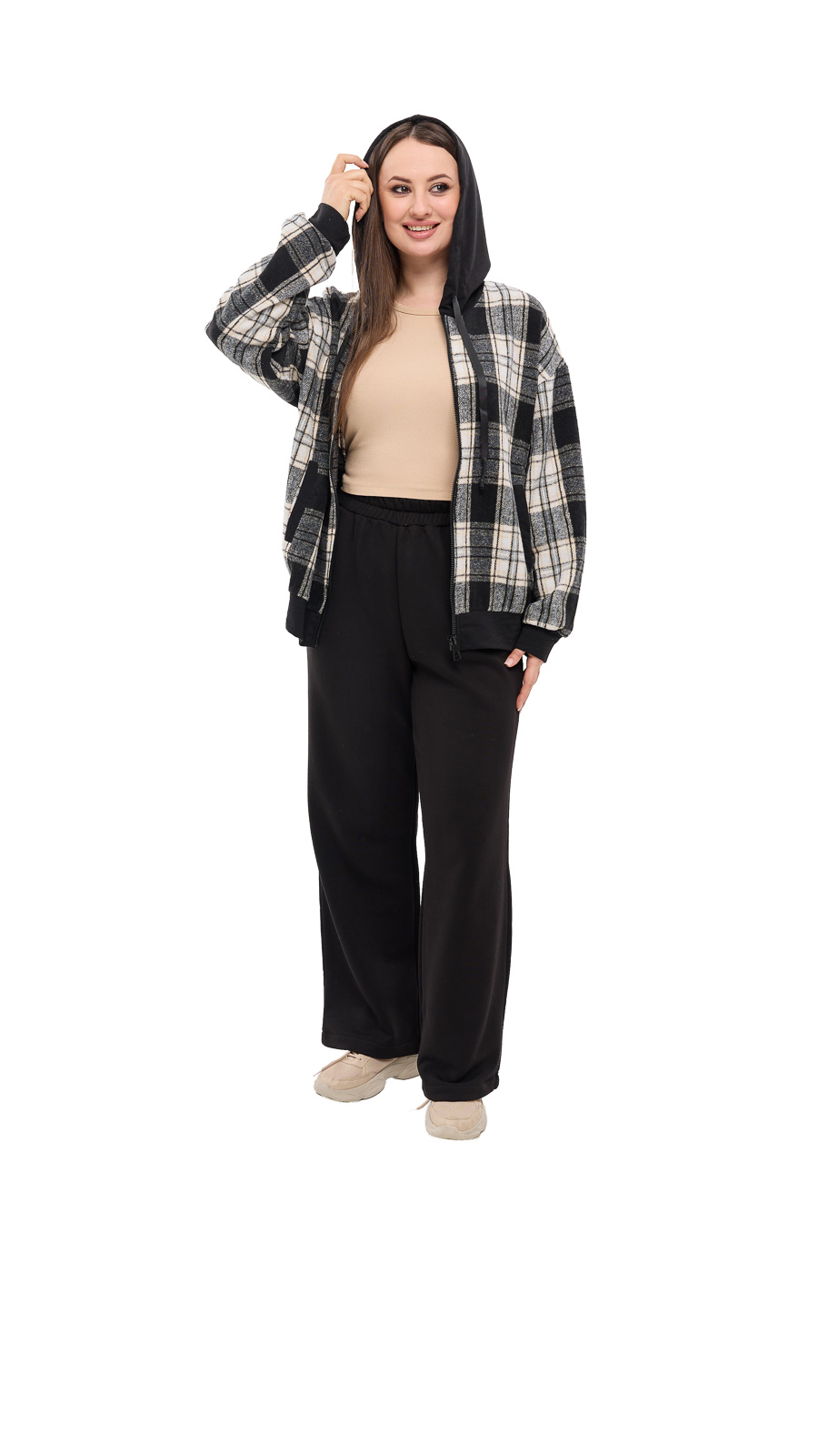 Комплект Мелисса в клетку с капюшоном — стильный и очень удобный вариант на каждый день, когда хочется выглядеть ухоженно, но чувствовать себя максимально свободно. Верх выполнен в формате мягкой рубашки-кофты на молнии с капюшоном и двумя удобными боковыми карманами — идеально, чтобы согреть руки или взять с собой мелочи. Ткань приятна на ощупь, хорошо ложится по фигуре и создает аккуратный силуэт. Брюки — прямого брючного кроя на резинке, с легким сужением к низу, благодаря чему образ выглядит современно и аккуратно. Комплект легко сочетается с базовыми футболками/топами и кроссовками, подходит для прогулок, поездок, работы в casual-стиле или уютных выходных.
