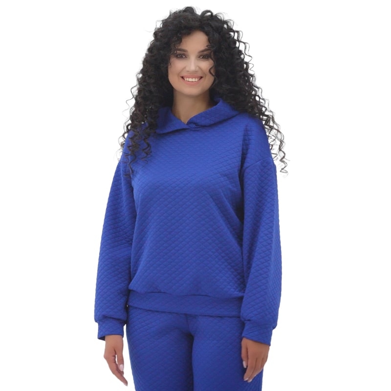 Для создания этого образа была выбрана концепция уютного худи в сочетании с удобными брюками. Худи великолепно сидит на фигуре, облегая плечи и спускаясь вниз свободным драпированным кроем, создавая расслабленное, но в то же время стильное впечатление.