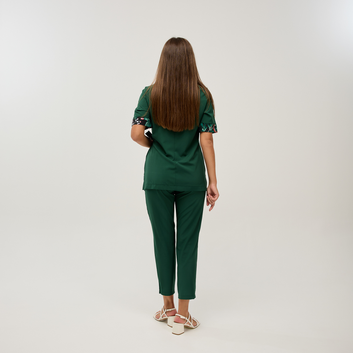 Ребекка - костюм, который мгновенно добавит изящества вашему образу! Сшит из невероятно мягкой и легкой ткани. Уникальный крой блузы подойдет для любого типа фигуры и подчеркнет ее женскую привлекательность. Цветочный рисунок добавит свежести, а укороченные, слегка облегающие брюки с карманами акцентируют внимание на изяществе ваших ног.