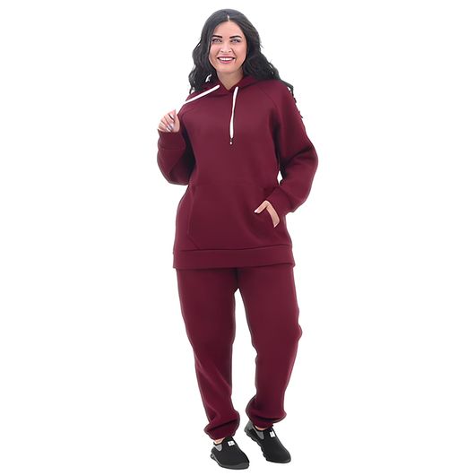 Костюм Шерри – настоящая находка для холодного времени года. Изготовленный из премиального утепленного футера на основе хлопка, он идеально согревает и поддерживает комфорт как в помещении, так и на улице. Этот комфортный и стильный костюм подходит для женщин с любым типом фигуры. В комплекте вас ждут актуальная укороченная куртка свободного кроя с капюшоном и комфортные брюки, которые подстроятся под ваши параметры.