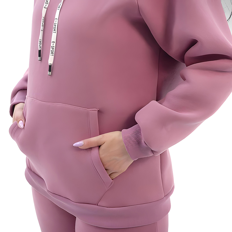 Костюм Шерри – настоящая находка для холодного времени года. Изготовленный из премиального утепленного футера на основе хлопка, он идеально согревает и поддерживает комфорт как в помещении, так и на улице. Этот комфортный и стильный костюм подходит для женщин с любым типом фигуры. В комплекте вас ждут актуальная укороченная куртка свободного кроя с капюшоном и комфортные брюки, которые подстроятся под ваши параметры.