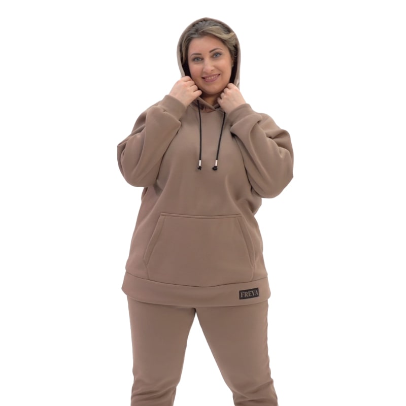 Костюм Шерри – настоящая находка для холодного времени года. Изготовленный из премиального утепленного футера на основе хлопка, он идеально согревает и поддерживает комфорт как в помещении, так и на улице. Этот комфортный и стильный костюм подходит для женщин с любым типом фигуры. В комплекте вас ждут актуальная укороченная куртка свободного кроя с капюшоном и комфортные брюки, которые подстроятся под ваши параметры.