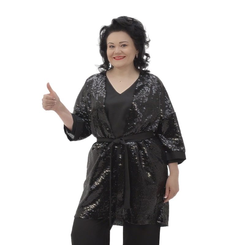 Ищете костюм, который идеально сочетает в себе элегантность, комфорт и стиль, при этом не требуя больших затрат? Распакуй TV предлагает вам отличное решение – Костюм Сияние! Этот костюм не только удобен, но и выглядит роскошно, благодаря сочетанию блузы и брюк прямого кроя с изысканным кардиганом-накидкой на поясе. Его элегантный дизайн с пайетками на кардигане и лаконичность однотонных брюк и блузы добавят изысканности вашему образу.