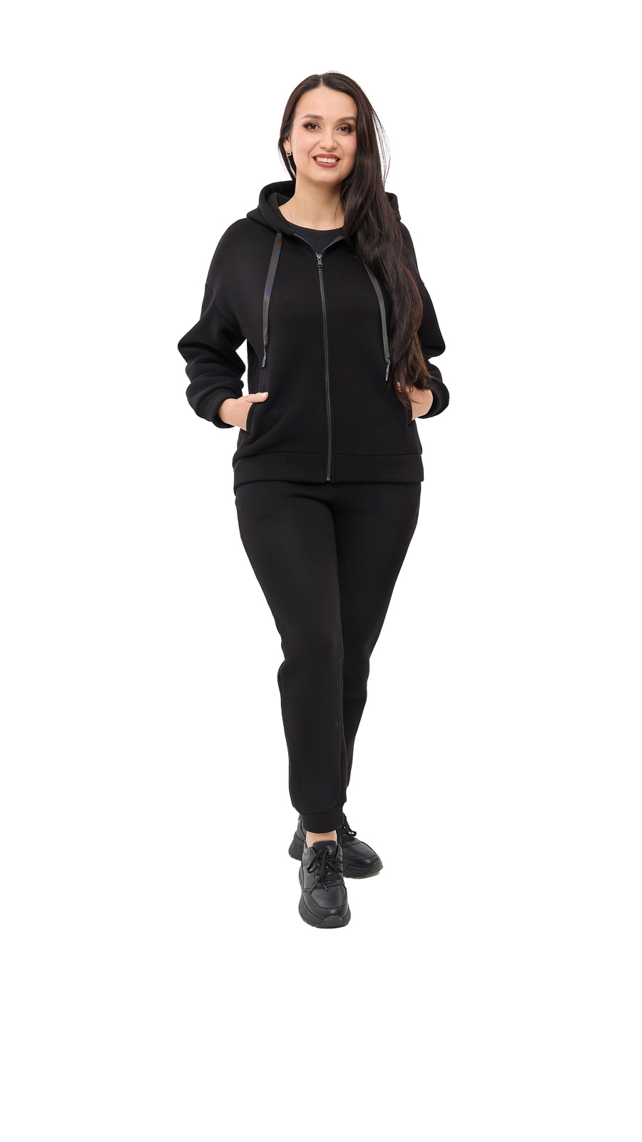 Костюм выполнен из тринитки на флисе — ткани, сочетающей в себе прочность и невероятную мягкость. Она отлично держит форму, не растягивается и сохраняет тепло даже в прохладную погоду.