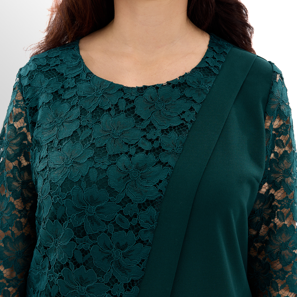 Костюм создан с учётом анатомических особенностей женской фигуры. Блуза с асимметрией и вставками из гипюра визуально вытягивает силуэт и скрывает несовершенства фигуры, создавая огненный и женственный образ. Классические брюки идеально сочетаются с блузой, создают комфорт и превосходный стиль.