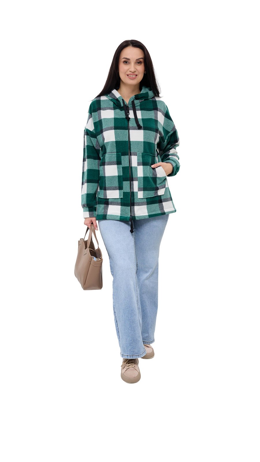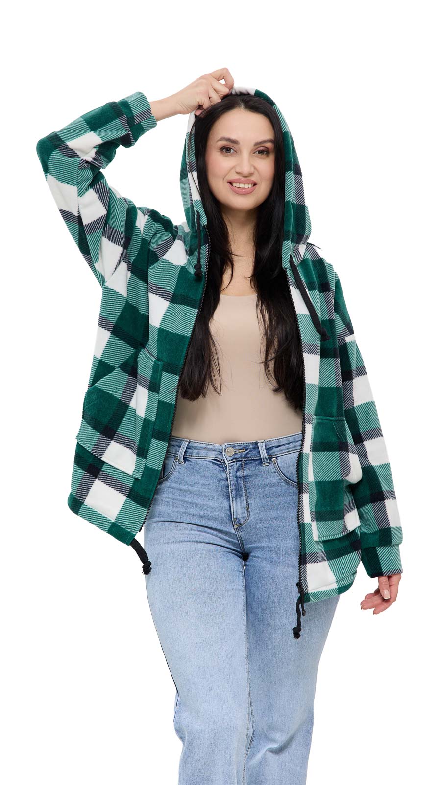 Куртка Флиса, клетка, зеленая